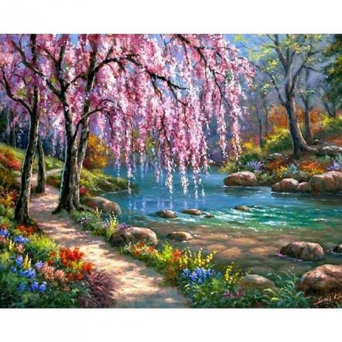 Rosa blomster ved elven