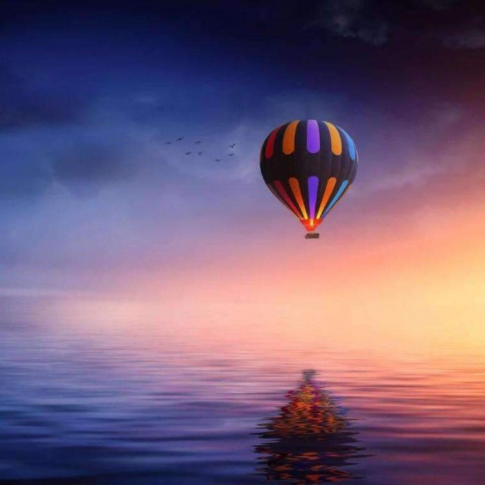 Solnedgang med luftballong